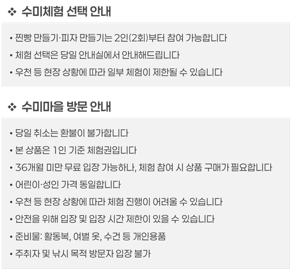특이사항 현장 상황에 따라 일부 체험 변경되거나 진행이 어려울 수 있습니다