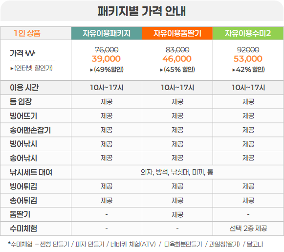 비용 자유이용_Fr:39,000원  자유이용돔딸기_FrSt:46,000원  자유이용수미2_FrS2:53,000원