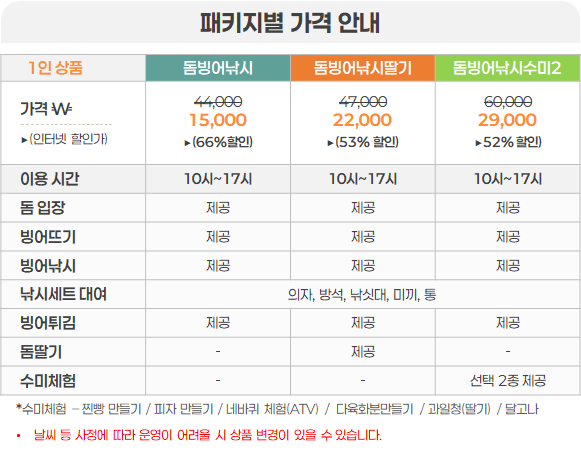 비용 돔빙어낚시_DbF:15,000원  돔빙어낚시딸기_DbFs:22,000원  돔빙어낚시수미2_DbFS2:29,000원